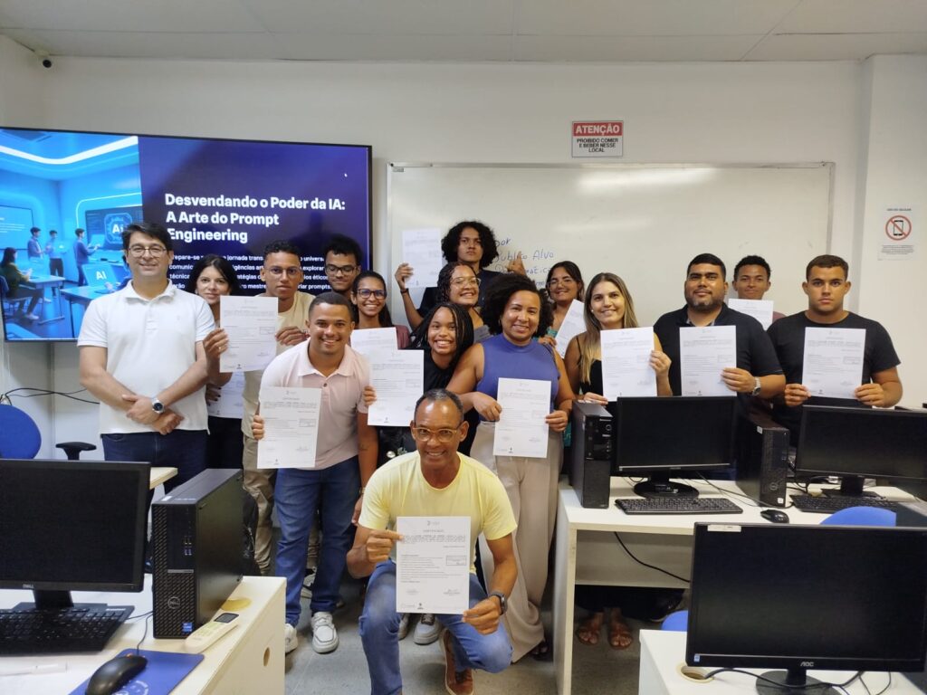 O curso “Domine a Arte do Prompt: Comunicação Eficaz com IA” formou cerca de 20 participantes e foi ministrado pelo professor e instrutor Wellington Gomes, com foco no desenvolvimento de competências práticas para o uso estratégico da Inteligência Artificial no ambiente profissional.